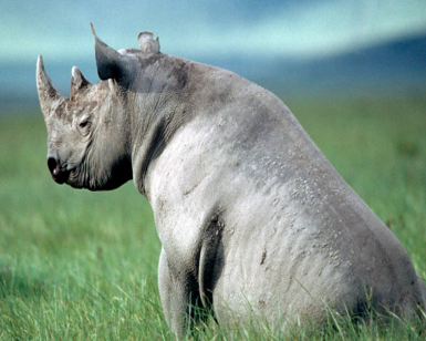 Black rhinos are the smaller of the two African rhino species. The most notable difference between white and black rhinos are their hooked upper lip. This distinguishes them from the white rhino, which has a square lip. Black rhinos are browsers rather than grazers, and their pointed lip helps them feed on leaves from bushes and trees.