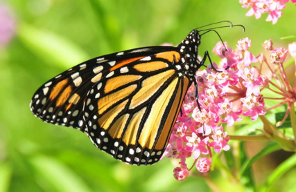 The monarch butterfly or simply monarch (Danaus plexippus) is a milkweed butterfly (subfamily Danainae) in the family Nymphalidae. Other common names, depending on region, include milkweed, common tiger, wanderer, and black veined brown. It may be the most familiar North American butterfly, and is considered an iconic pollinator species. Its wings feature an easily recognizable black, orange, and white pattern, with a wingspan of 8.9–10.2 cm.